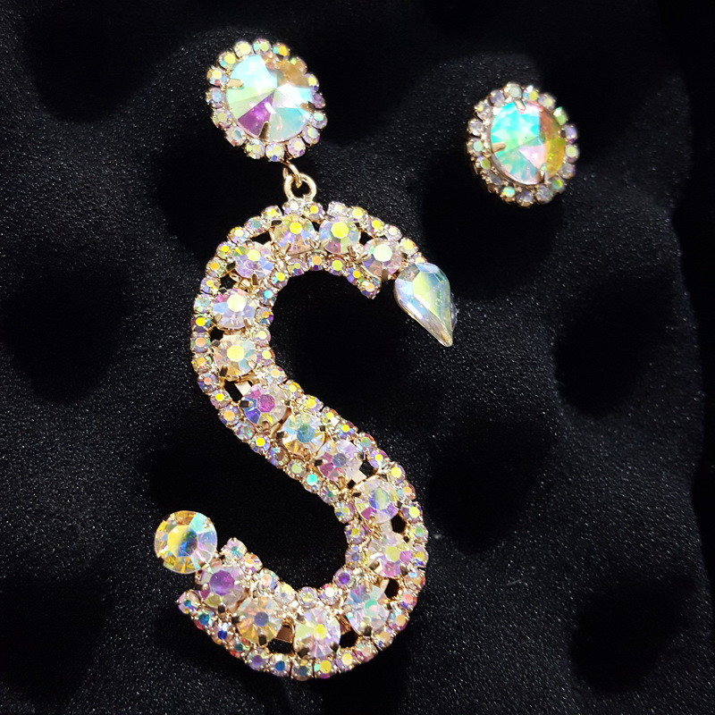 Crystal M,O,S English Letters Earring