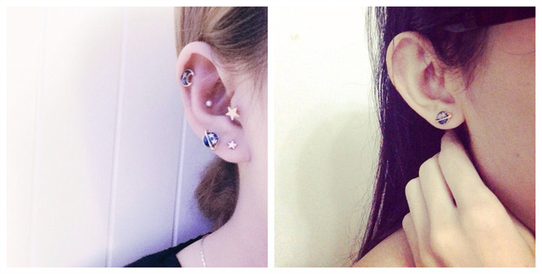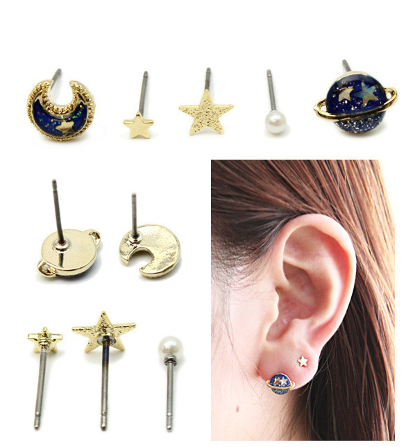 5PCS/SET Enamel Star Moon Simulated Pearl Universe Planet Stud Earrings